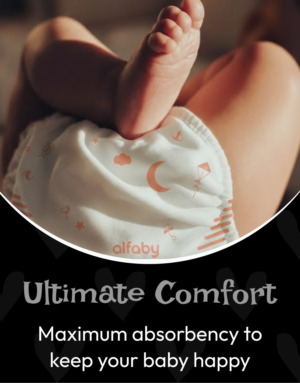 The Super Duper Dry absorbent core locks in wetness quickly, ensuring long-lasting dryness both day and night. Easy to pull on and take off, Alfaby Comfy Pants are perfect for active babies, making diaper changes hassle-free for parents.